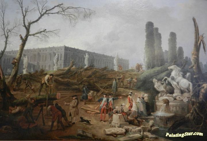 Tree felling in the garden of Versailles around the Baths of Apollo, Art Painting by Hubert Robert