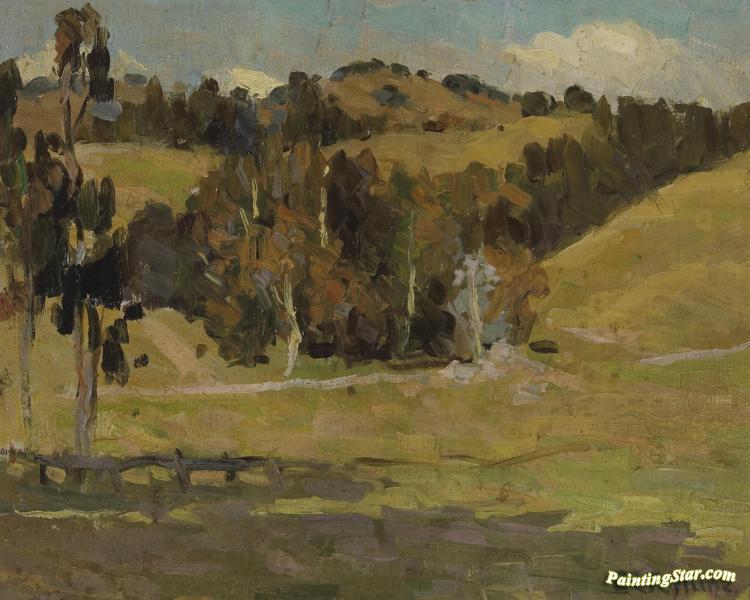 Trees Amongst Rolling Hills, California, Art Painting by E. Charlton Fortune