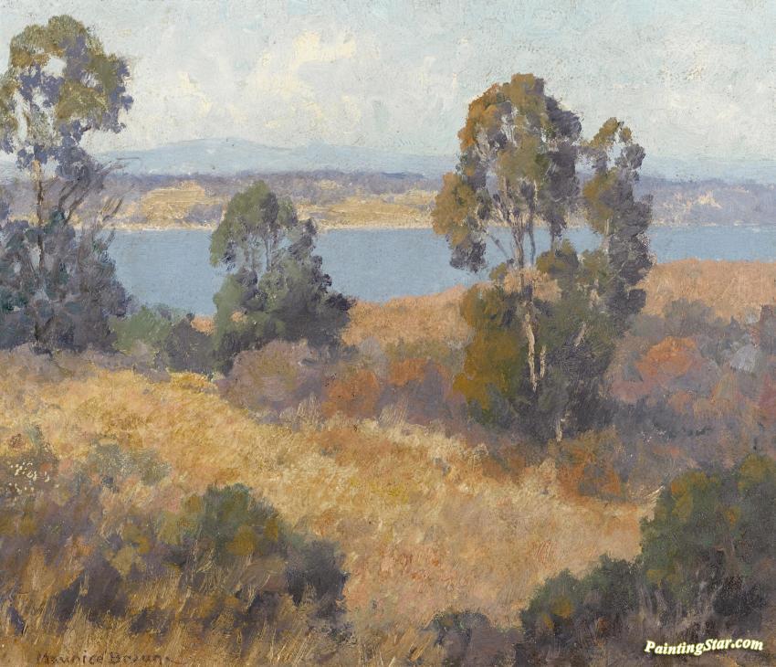 Trees And Autumn Grasses With A Lake Beyond, Art Painting by Maurice Braun