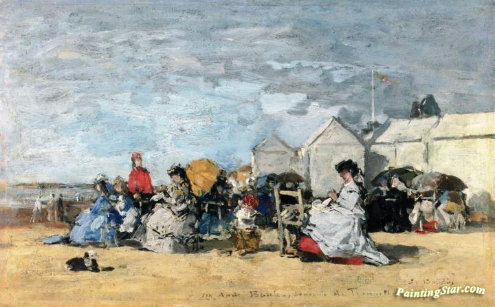 Trouville, Crinolines and Cabins, Art Painting by Eugène-Louis Boudin