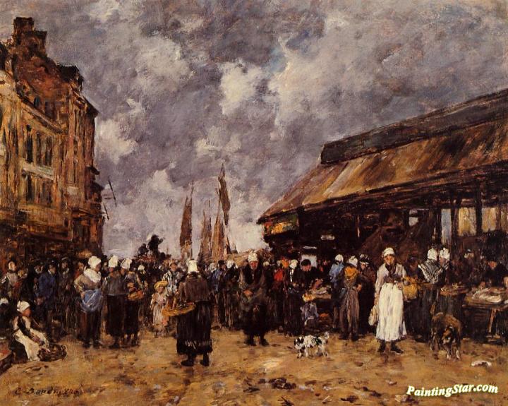 Trouville, the Fish Market, Art Painting by Eugène-Louis Boudin