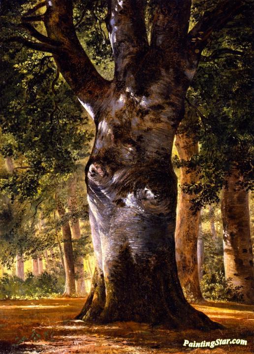 Trunk of a Beech Tree, Art Painting by Alexandre Calame