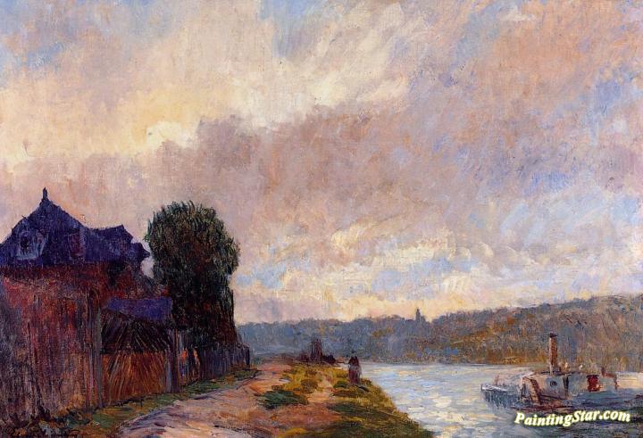Tugboat on the Seine Downstream from Rouen, Art Painting by Albert Lebourg