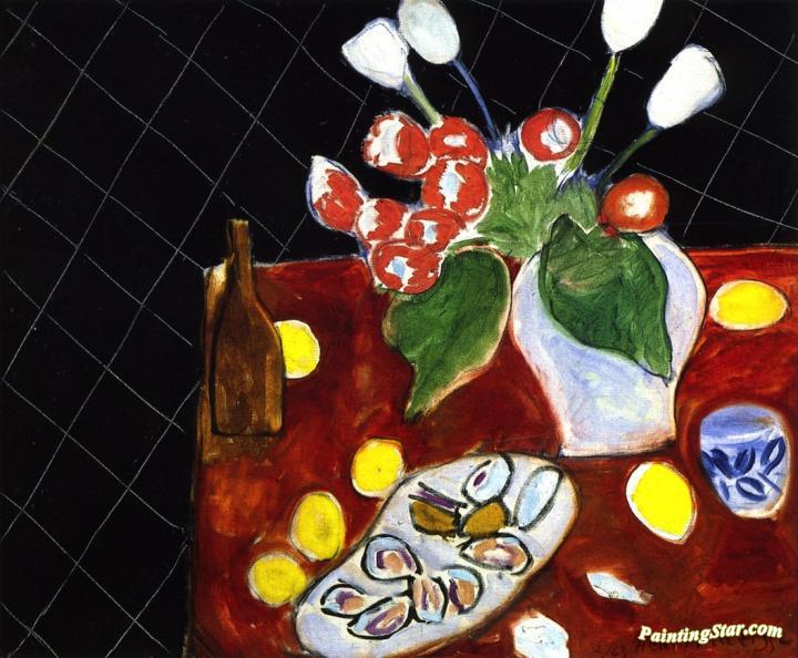 Tulips and Oysters on a Black Background, Art Painting by Henri Matisse