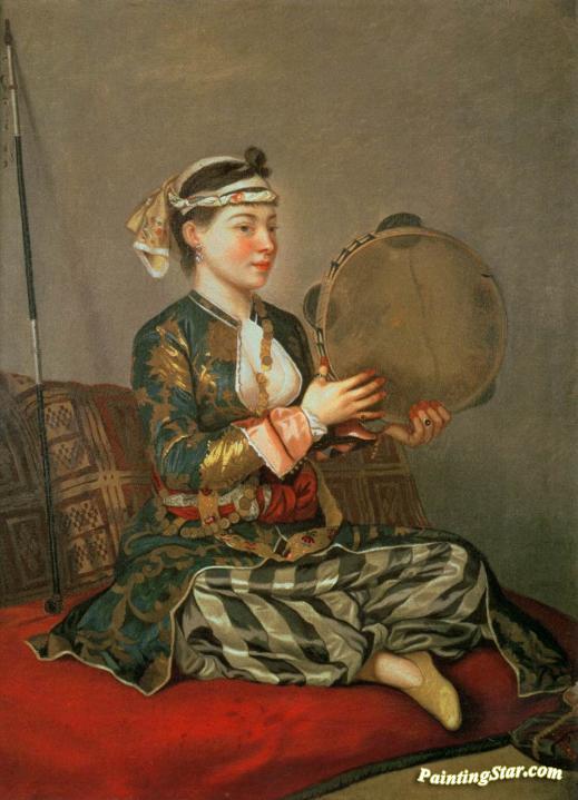 Turkish Woman with a Tambourine, Art Painting by Jean Etienne Liotard