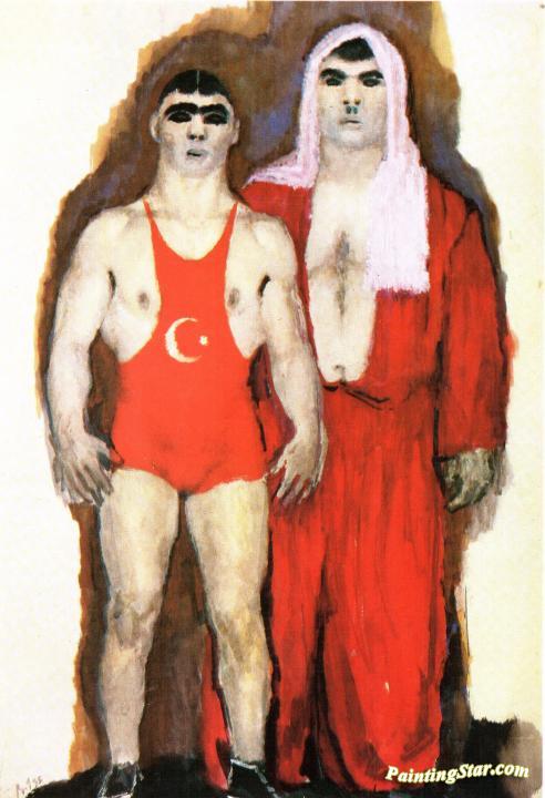 Turkish Wrestlers, Art Painting by Vladimir Lebedev