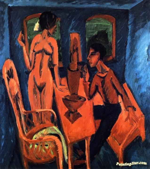 Turmzimmer, Selbstbildnis mit Erna, Art Painting by Ernst Ludwig Kirchner