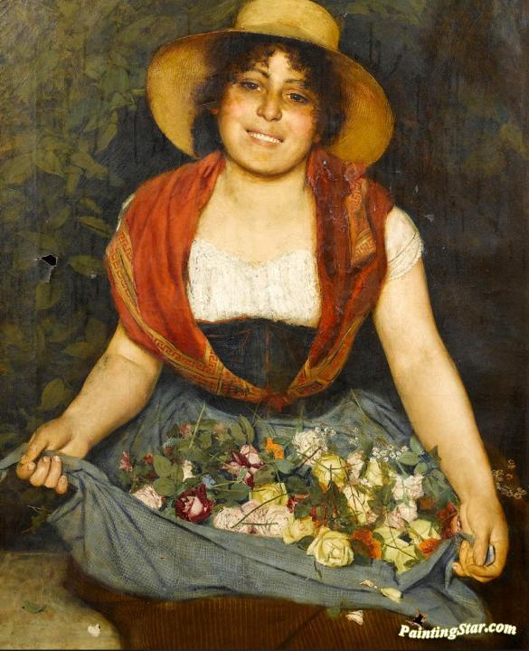 Tuscan Flower Girl, Art Painting by Gaetano Bellei