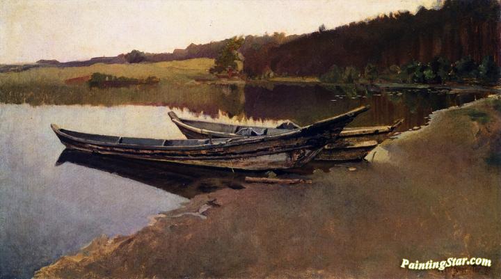 Two Boats on the Lake Shore, Art Painting by Karl Hagemeister
