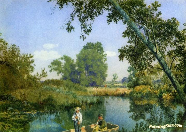 Two Boys In A Rowboat, Art Painting by John William Hill