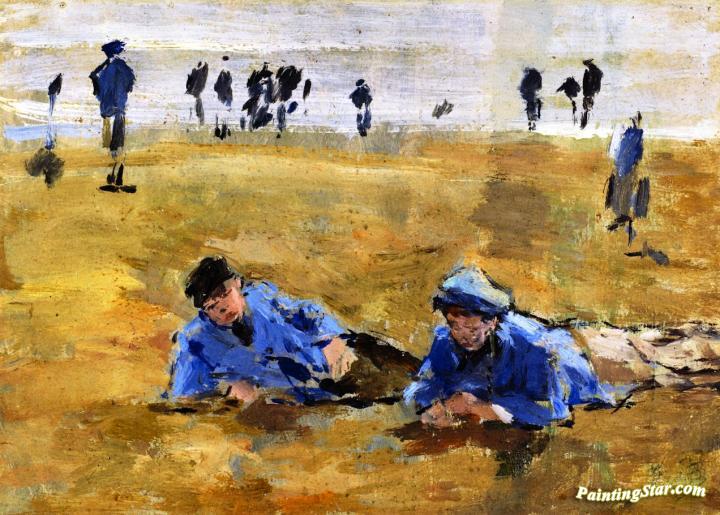 Two Boys Lying on the Beach, Art Painting by Eugène-Louis Boudin
