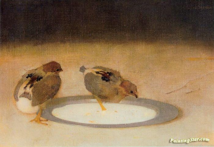 Two Chicks With A Tin Plate, Art Painting by Jan Mankes