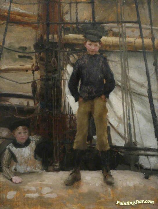 Two Children on Deck, Art Painting by Henry Scott Tuke