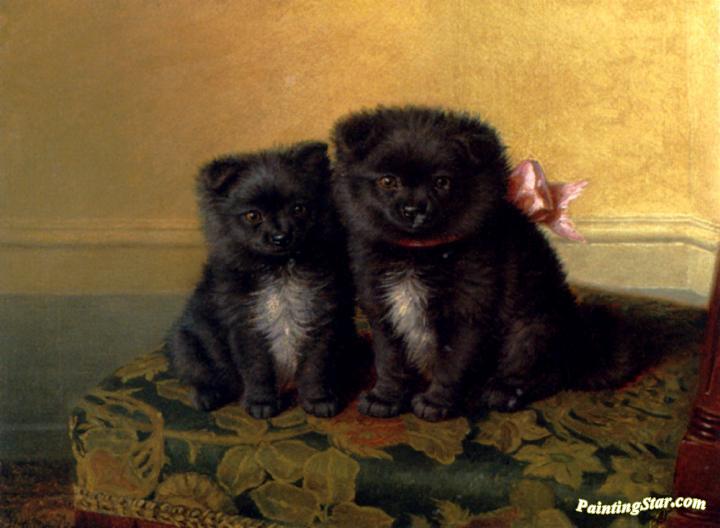 Two chow pups seated on a chair in an interior, Art Painting by Horatio Henry Couldery