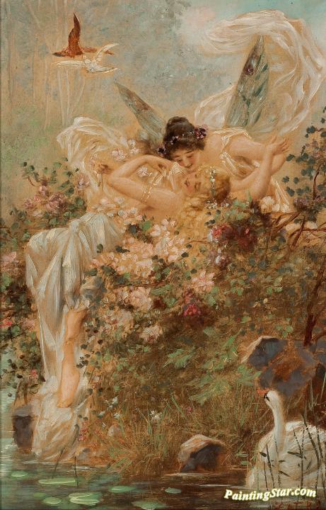 Two Fairies with a Swan, Art Painting by Hans Zatzka