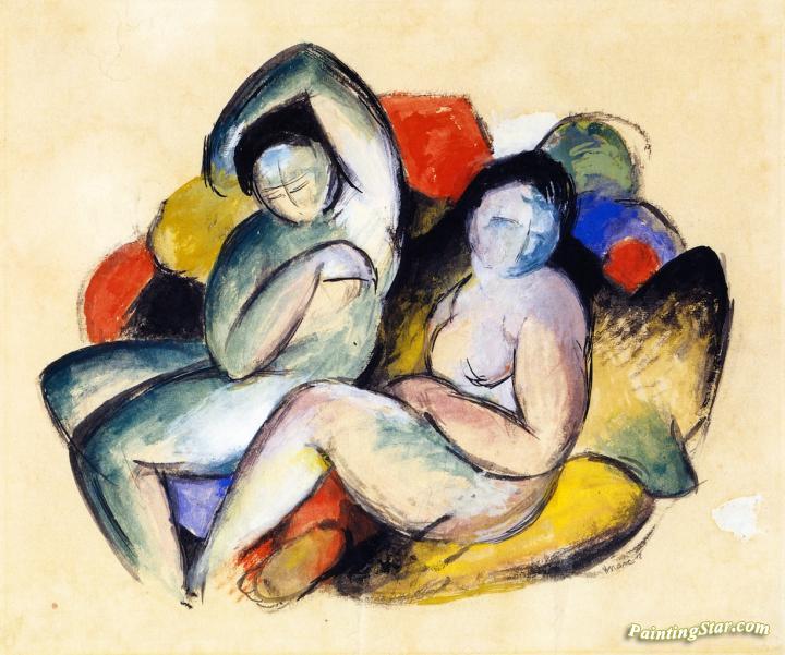 Two Female Nudes, Art Painting by Franz Marc