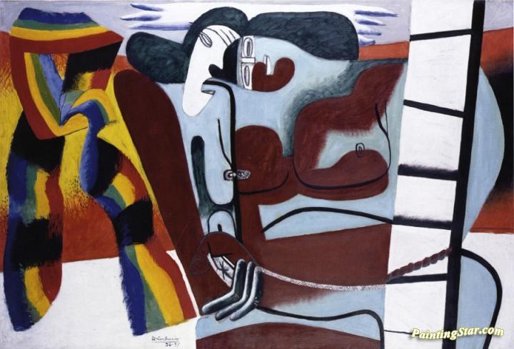 Two Figures with a Multicolored Scarf, Art Painting by Charles Edouard Jeanneret