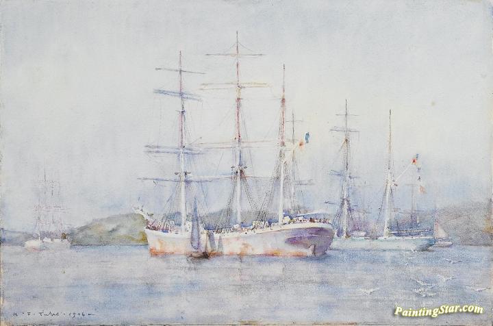 Two French barques at their anchorage in Carrick Roads, Art Painting by Henry Scott Tuke