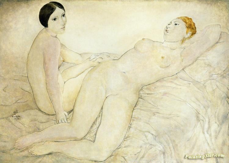Two Friends (youki And Mado), Art Painting by Tsuguharu Foujita