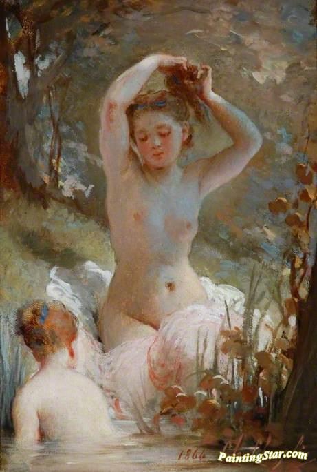 Two Girls Bathing, Art Painting by Charles Chaplin