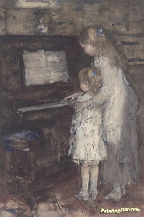 Two Girls, Daughters Of The Artist At The Piano, Art Painting by Jacob Maris