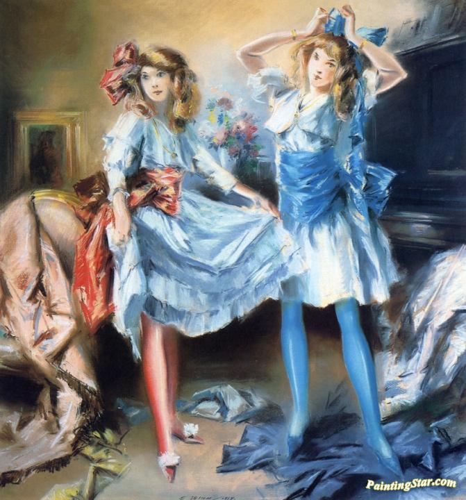 Two Girls Dressing for a Party, Art Painting by Everett Shinn