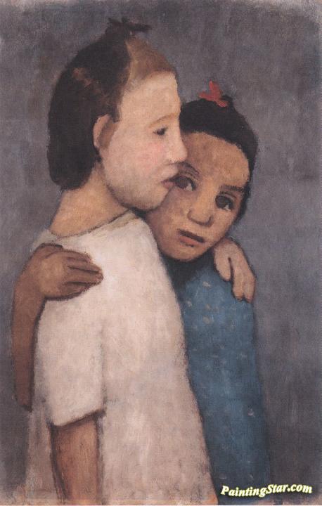 Two girls in white and blue dresses, Art Painting by Paula Modersohn-Becker