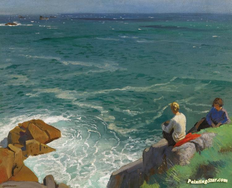 Two Girls On The Cliffs, Art Painting by Dame Laura Knight