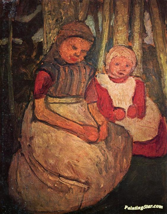 Two girls sitting in the birch forest, Art Painting by Paula Modersohn-Becker