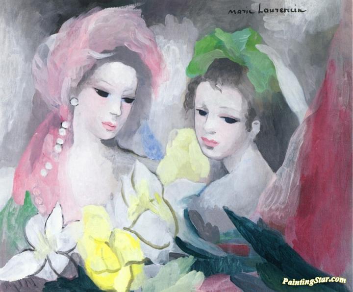 Two Girls With Flowers, Art Painting by Marie Laurencin