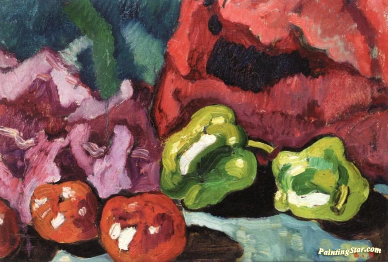 Two Green Peppers And Tomatoes, Art Painting by Louis Valtat