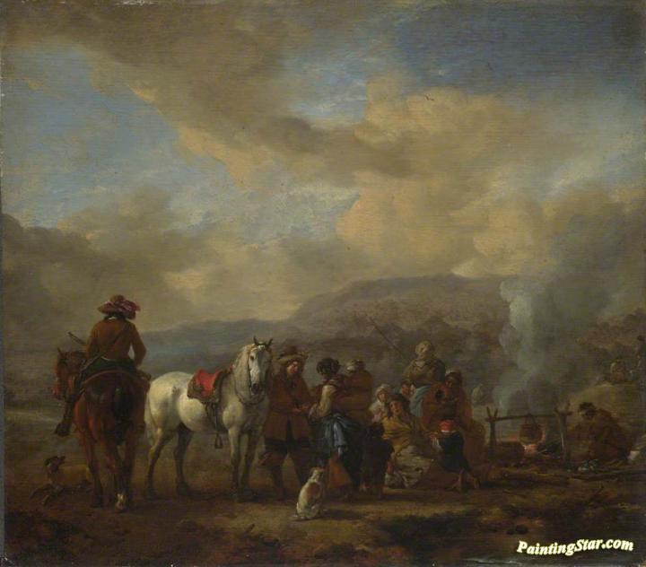 Two Horsemen at a Gipsy Encampment, Art Painting by Philips Wouwermans