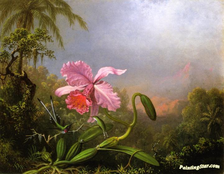 Two Hummingbirds by an Orchid, Art Painting by Martin Johnson Heade