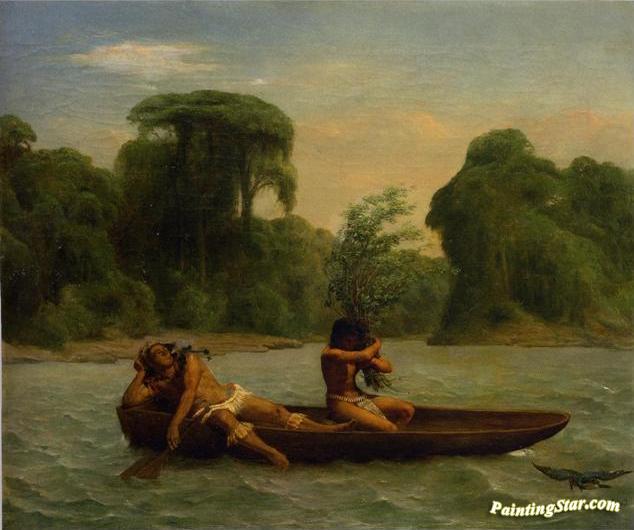 Two Indians In A Canoe, Art Painting by Francois-Auguste Biard