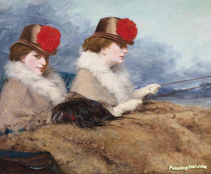 Two ladies in a carriage ride, Art Painting by James Hayllar, R.B.A.