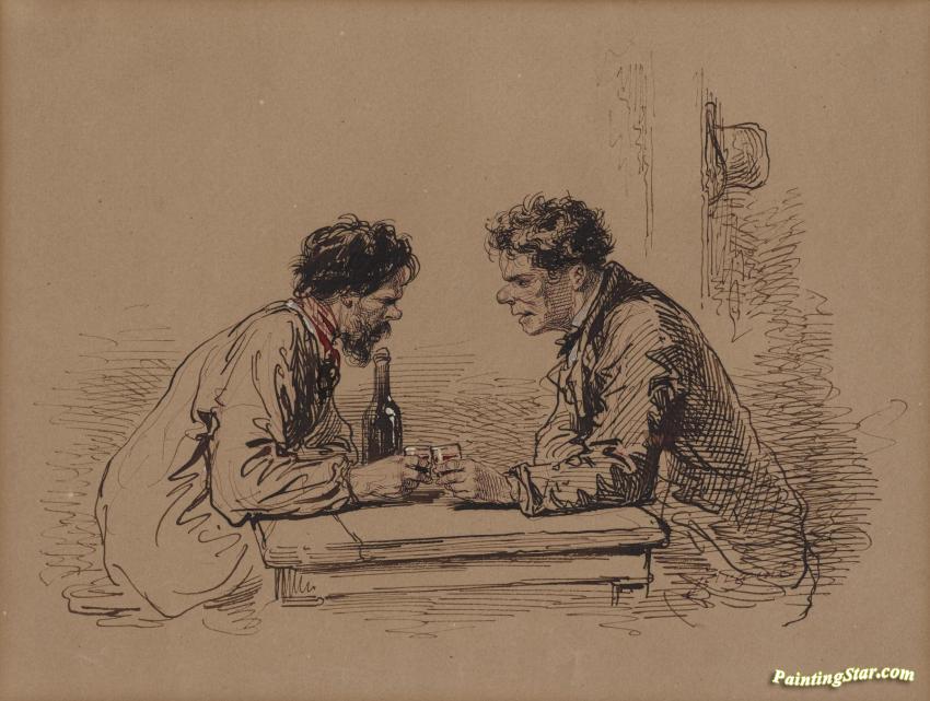 Two Men At A Table With Wine,1859, Art Painting by Paul Gavarni