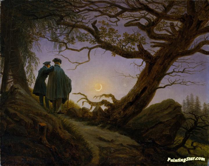 Two Men Contemplating The Moon, Art Painting by Caspar David Friedrich