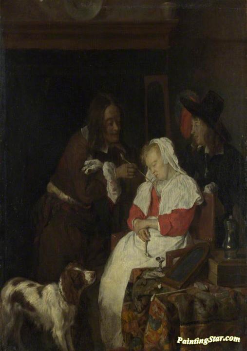 Two Men with a Sleeping Woman, Art Painting by Gabriel Metsu
