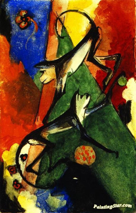 Two Monkeys, Art Painting by Franz Marc