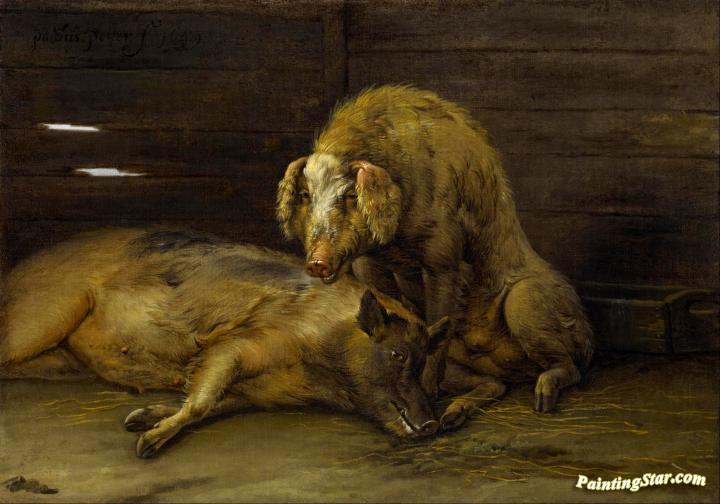 Two Pigs in a Sty, Art Painting by Paulus Potter