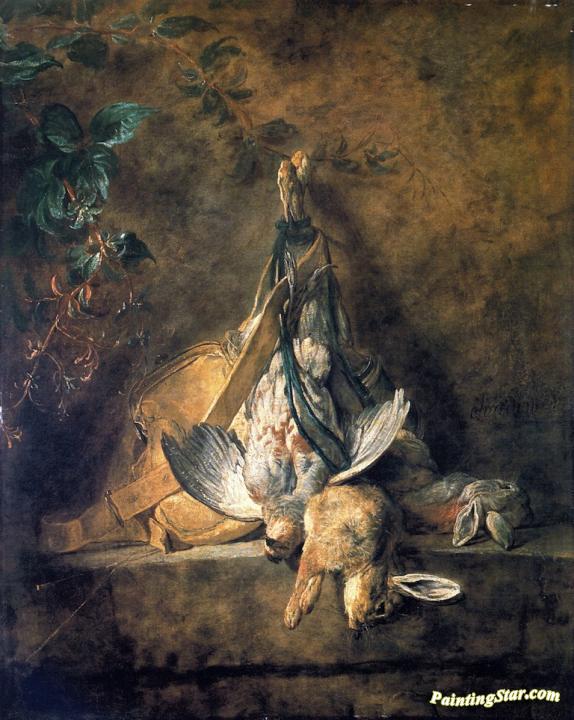 Two Rabbits, A Grey Partridge, Game Bag And Powder Flask, Art Painting by Jean-Baptiste-Simeon Chardin