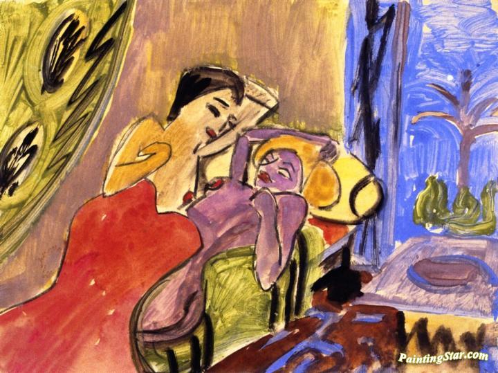 Two Reclining Nudes, Art Painting by Hermann Max Pechstein