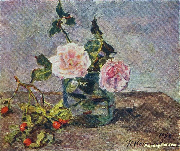 Two roses and dogrose berries, Art Painting by Pyotr Konchalovsky