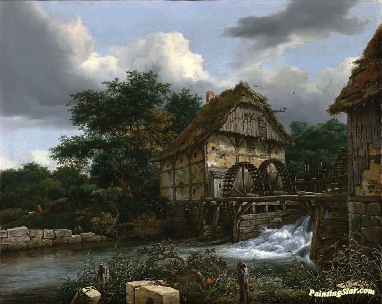 Two Watermills and an Open Sluice, Art Painting by Jacob van Ruisdael