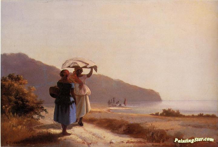 Two Woman Chatting by the Sea, St. Thomas, Art Painting by Camille Pissarro