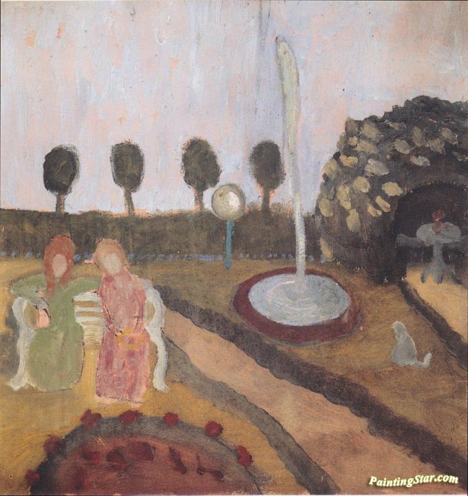 Two women in the garden with a fountain, Art Painting by Paula Modersohn-Becker