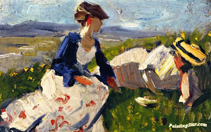 Two Women On The Hillside, Sketch, Art Painting by Franz Marc