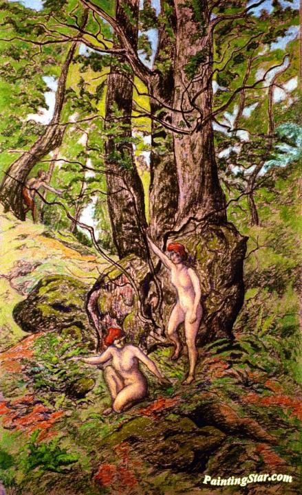 Two Women Surprised by a Faun, Art Painting by Paul Ranson