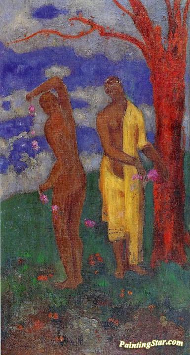 Two Women under a Red Tree, Art Painting by Odilon Redon
