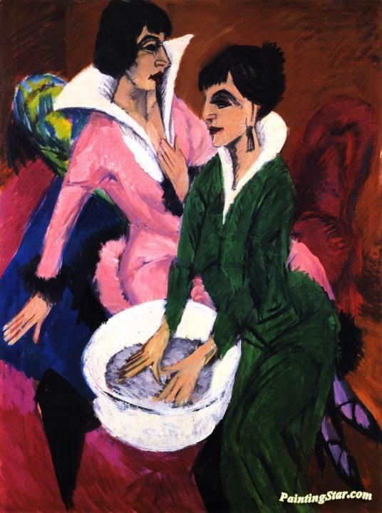 Two Women with a Washbasin, Art Painting by Ernst Ludwig Kirchner